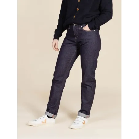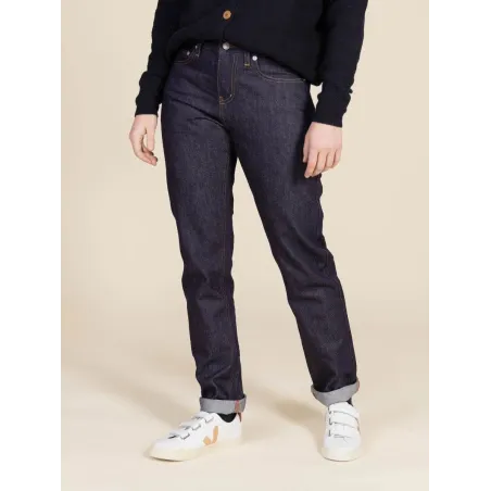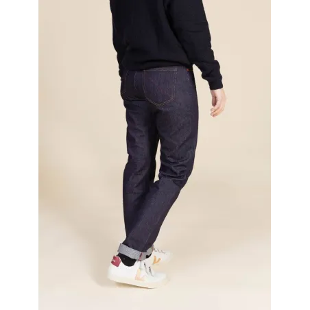 L’indémodable coupe droite, notre 201.Dans son tissu 100 % coton bio, il est robuste. Ce modèle est un classique avec une coupe épurée, les détails qui font la différence ? Un tissu indigo brut profond qui se délavera au fil du temps pour en faire un jeans singulier.