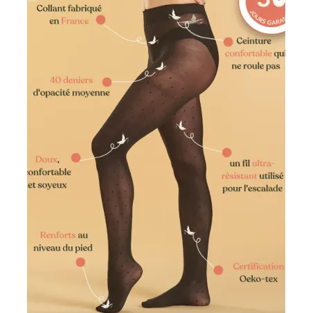 Collants Ultra résistants Cygnes 40 deniers Plumetis
