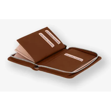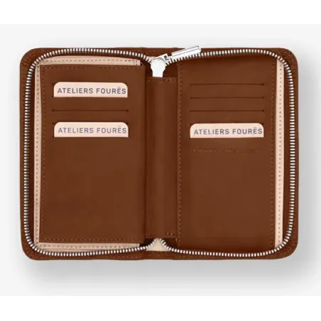 Nous sommes les seuls à utiliser la technique du rembordé contrecollé sur la petite maroquinerie. Le cuir est affiné et replié sur lui-même, ainsi les bords de nos pièces ne sont pas apparents et nous n'avons pas besoin d’utiliser de teinture de tranche. C'est donc beaucoup plus esthétiques et surtout bien plus résistants ! Les frottements dans le temps ne créent pas d'arrachement au niveau de la couture du cuir rembordé, là où la teinture de tranche fini inévitablement par se déchiqueter.