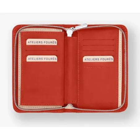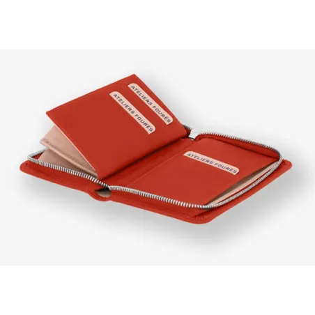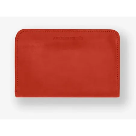 Nous sommes les seuls à utiliser la technique du rembordé contrecollé sur la petite maroquinerie. Le cuir est affiné et replié sur lui-même, ainsi les bords de nos pièces ne sont pas apparents et nous n'avons pas besoin d’utiliser de teinture de tranche. C'est donc beaucoup plus esthétiques et surtout bien plus résistants ! Les frottements dans le temps ne créent pas d'arrachement au niveau de la couture du cuir rembordé, là où la teinture de tranche fini inévitablement par se déchiqueter.