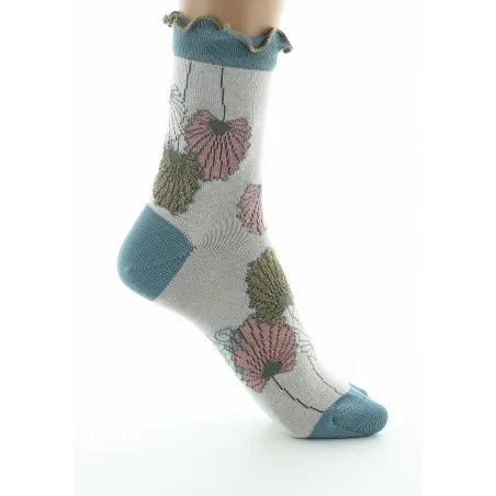 Un souffle de légèreté avec les chaussettes Monnaie du Pape. Un modèle raffiné en fil d’Écosse aux reflets lumineux, inspiré de la délicatesse florale.