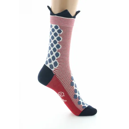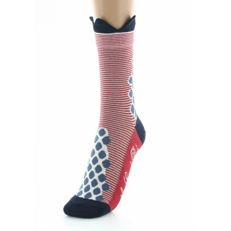 Un modèle iconique signé Berthe Aux Grands Pieds. Rayures, pois et la célèbre couronne pour un style intemporel et élégant.