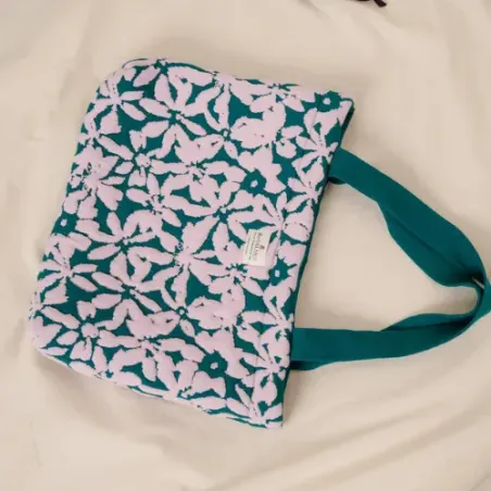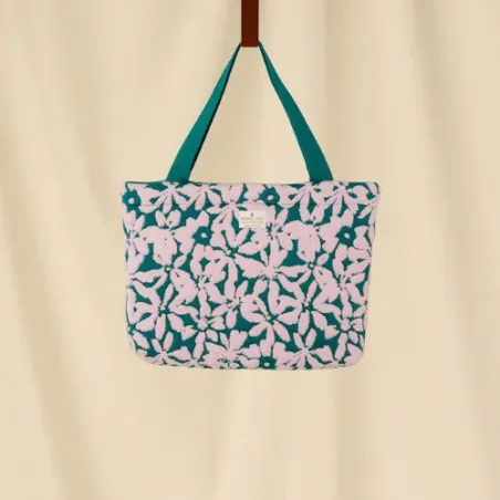 Moyen cabas version fleurs mauve et vert en coton