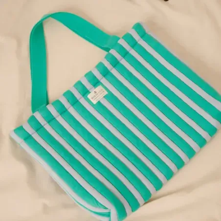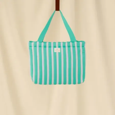 Moyen cabas version rayures verticales ciel et diabolo en coton