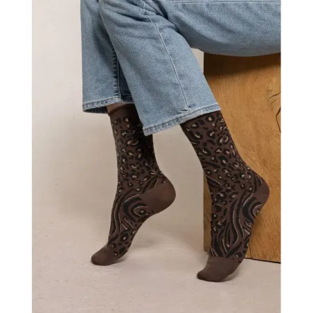 Ces chaussettes allient la chaleur naturelle de la laine Mérinos et la douceur de leur intérieur 100% coton. Vous bénéficiez d'une isolation thermique efficace, tout en profitant d'une sensation de confort sans démangeaison. Leur motif léopard revisité apporte une touche de caractère et de modernité à vos tenues. Une pièce audacieuse et chic, coup de cœur assuré pour la saison.
