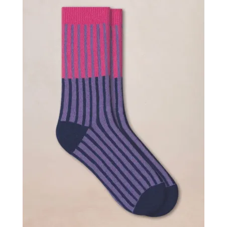 Tricotées dans un mélange de laine et cachemire, ces chaussettes à rayures verticales évoquent l’élégance et le raffinement des mailles d’hiver. Leur toucher épais et doux garantit un confort optimal, tandis que les rayures apportent une touche graphique moderne, facile à assortir.