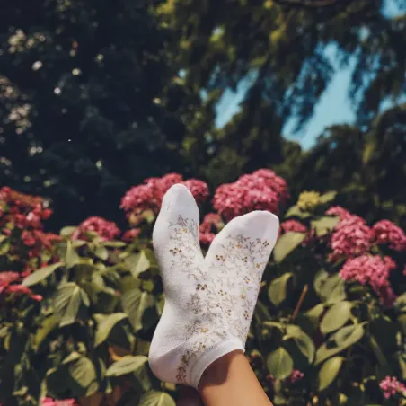 Grâce à leur teinte écru intemporelle, les chaussettes invisibles Les Baies se marient harmonieusement avec un jean, une jupe, une robe ou un pantalon plus habillé. Le motif apporte une note d’originalité subtile, idéale pour celles qui apprécient les détails élégants qui se révèlent de près.