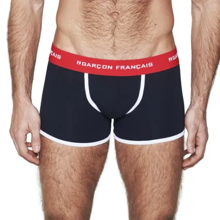 Boxer long homme tricolore. Boxer taille basse, coupe ajustée, certifié Oeko-Tex.