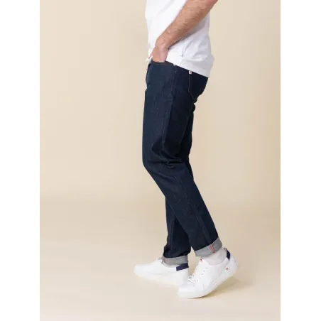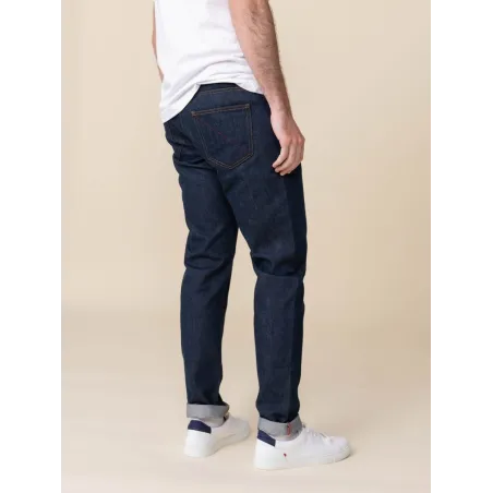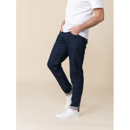 Il est filé + teint + tissé + ennobli + coupé + confectionné en France. Inspiré de l'iconique selvedge, notre tissu SuperDenim est super résistant grâce à un tissage serré.