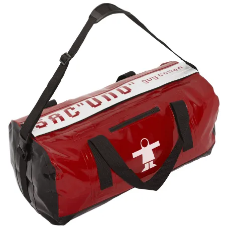SAC DE NAVIGATION SEMI ETANCHE. Modèle déposé. 60 litres de capacité approximative. Très résistant. Corps du sac étanche. Fermeture maxi glissière sous rabat agrippant. Bandoulière réglable et amovible. Sangle latérale réglable sur un côté pour y glisser, bottes, palmes, duvet.... Poche latérale zippée. Fond lisse. 33X60 cm