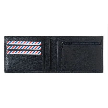 Le rabat inférieur quant à lui est équipé d’une poche plate où peuvent être glissés vos tickets de métro. Cette poche est équipée d'une autre poche zippée où pourra être conservé votre petite monnaie et billets pliés. Il est également possible de loger vos billets ou autres documents dans la grande poche plate dorsale qui se profile sur toute la largeur et hauteur du portefeuille ouvert (H 9.5 et L 12 cm dimensions internes). Enfin à l’arrière du portefeuille se trouve une poche plate afin de glisser des documents comme le permis de conduire par exemple. D’ailleurs pour ce dernier une poche transparente est fournie pour pouvoir le protéger au mieux.