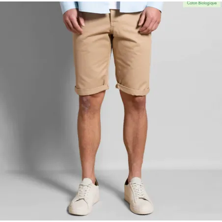 Découvrez notre bermuda beige Hanh coupe droite en coton bio, conçu pour homme. Fabriqué en France avec un tissu de qualité.