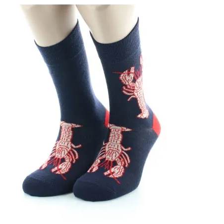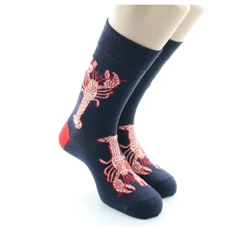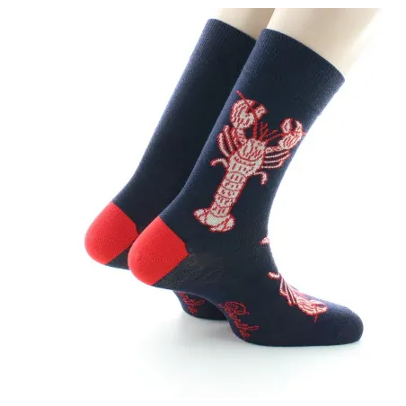 Chaussettes fantaisie 100% marines, arborant ses homards rouges éclatants… Cap sur l'originalité, moussaillon !