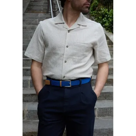 Affichez un style original mais décontracté avec la ceinture tressée bleu électrique. À la fois moderne et chic cet accessoire mettra en valeur vos tenues. Il se porte sur un jean, un chino, ou même un costume. Il s’agit d’une pièce décomplexée, élégante et originale qui vous ajoute une touche d’originalité à vos tenues d’été comme d’hiver.