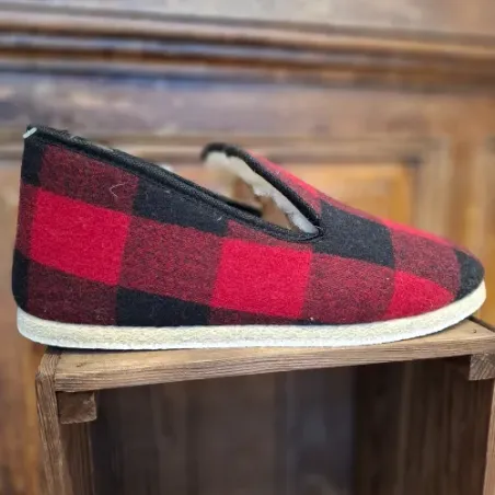 Rock et audacieuses mais tellement dans l'esprit des charentaises ! Le modèle bûcheron par Rivalin doublé de pure laine est cousu sur une semelle épaisse en feutre de laine tissée 5 chaînes qui est elle fabriquée dans le Tarn. Semelle anti dérapante