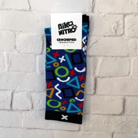 Chaussettes mi-hautes (bien laver sur l'envers avant de les porter)