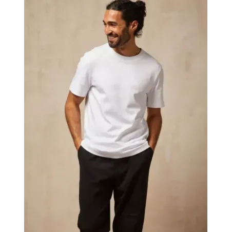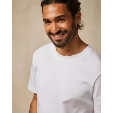 Plongez dans l'essence même du style avec notre t-shirt épais. Sa coupe droite intemporelle et son col large, lui confèrent une allure résolument moderne. Tricoté dans nos ateliers dans un jersey de Coton Bio en 240g/m2, ce t-shirt épais offre une épaisseur luxueuse et une tenue impeccable qui vous accompagnera tout au long de la journée. Son caractère auto-suffisant en fait un indispensable de votre vestiaire, apportant une touche de sophistication à chaque tenue. En le portant, vous prenez conscience de l’attention nécessaire pour fabriquer un tel t-shirt. Plus épais qu’un t-shirt classique, il vous procurera un sentiment de bien-être lorsqu'il fait plus frais.