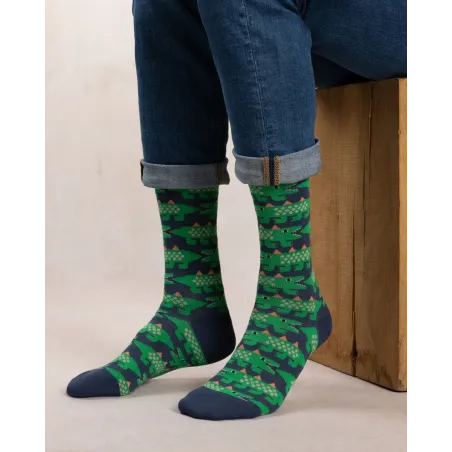 Affichez un caractère affirmé avec ces chaussettes crocodiles au motif audacieux. Tricotées à partir d'un coton peigné de grande qualité, elles sont douces, résistantes et confortables.