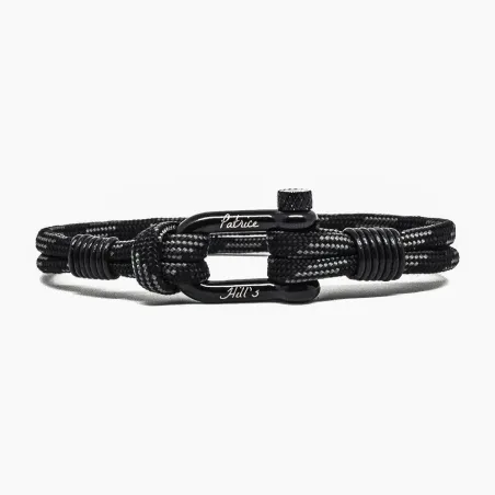 Le bracelet Dark de Patrice Hill’s est confectionné à la main avec des matériaux de qualité, de la corde d’escalade, des nœuds en cuir véritable et une manille en acier inoxydable.