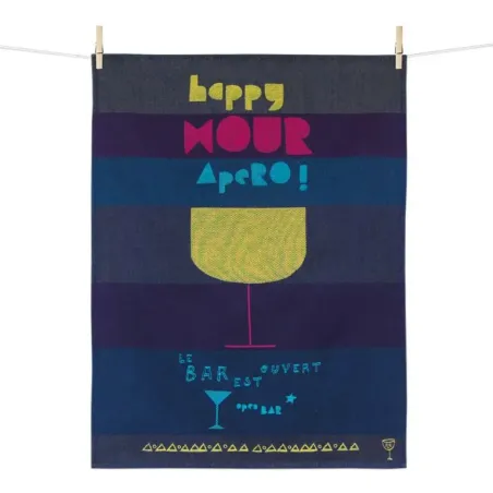 Le torchon « Happy Hour » a été créé par l’illustrateur Patrick Lebas. Épicurien, il s’inspire de sa passion pour le vin pour mettre en scène son univers décalé et coloré. Appelé « Happy Hour » dans les pays anglo-saxons et par la jeunesse du monde entier, il se traduit par l’apéritif en français.