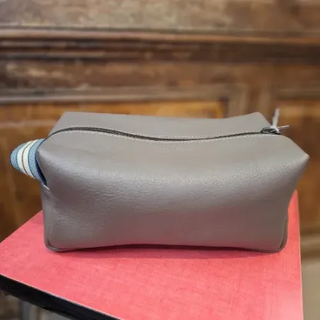 Cette trousse de toilette est en cuir ressourcé. Sa taille confortable a été étudiée pour qu'elle puisse contenir produits de soins, dentifrice et même rasoir ! Pièce fabriquée dans notre atelier du Tarn.