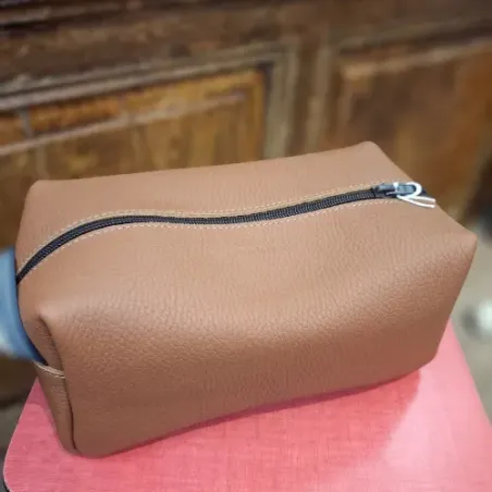Cette trousse de toilette est en cuir ressourcé. Sa taille confortable a été étudiée pour qu'elle puisse contenir produits de soins, dentifrice et même rasoir ! Pièce fabriquée dans notre atelier du Tarn.