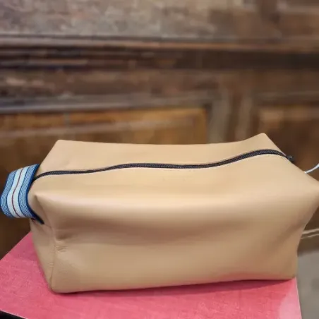Cette trousse de toilette est en cuir ressourcé. Sa taille confortable a été étudiée pour qu'elle puisse contenir produits de soins, dentifrice et même rasoir ! Pièce fabriquée dans notre atelier du Tarn.